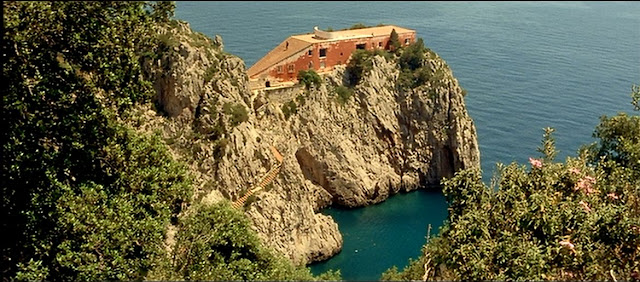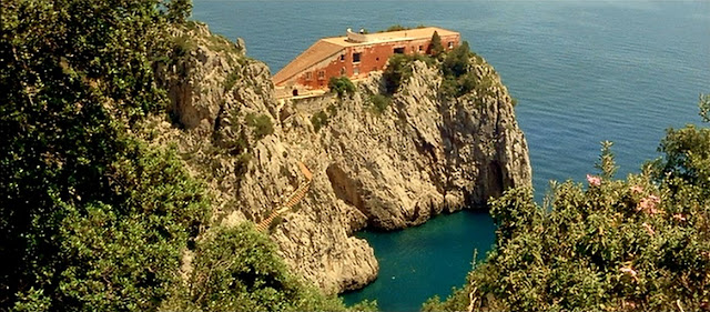 Later, as we climb around the pitched, platonic geometries of the Casa Malaparte, otherworldly in its siting on the edge of a rocky cliff, timeless in its elementary architectural detail, we are treated to every kind of solar trick and treat - washing the muted red plaster in relief against the dappled refraction of cobalt sea below, hitting hot the flat, unprotected stone terrace roof above, and reflecting through raked violet shadows on the steps to get there - you can feel the sun on your neck and the sweet smell of jasmine & honeysuckle swelling the balmy air.